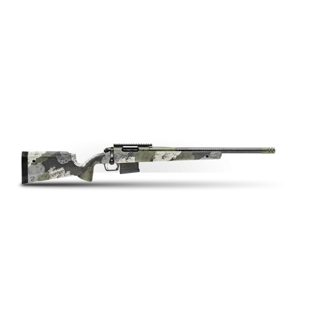 La Springfield Model 2020 Waypoint en .308 Win, finition Evergreen Camo, associe matériaux ultralégers et précision de niveau custom. Son canon carbone de 20" (pas 1:10) reçoit un revêtement Cerakote® H-264 Mil-Spec Green et un frein de bouche SA Radial amovible pour dompter le recul. Construite sur le boîtier inox Model 2020 (Cerakote H-264), la carabine utilise un verrou cannelé en acier 4140 nitruré pour un cycle fluide et durable. La détente TriggerTech réglable (2,5–5 lb) et le rail Picatinny standard Rem 700 SA (vis 6-48) facilitent le montage optique et l’affinage du départ.