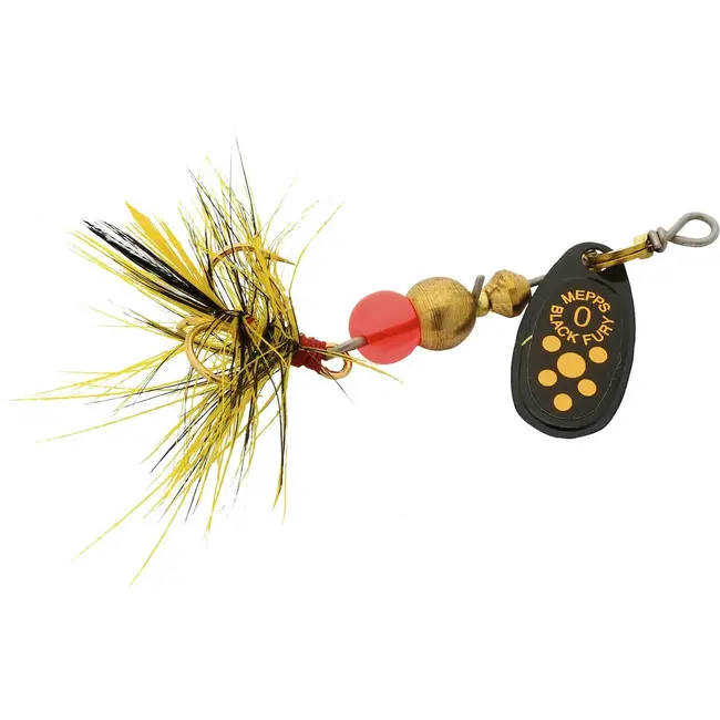 Évaluer MEPPS Cuillère Tournante Mepps Black Fury Dressed #2 1/6Oz Black/Yellow Dots