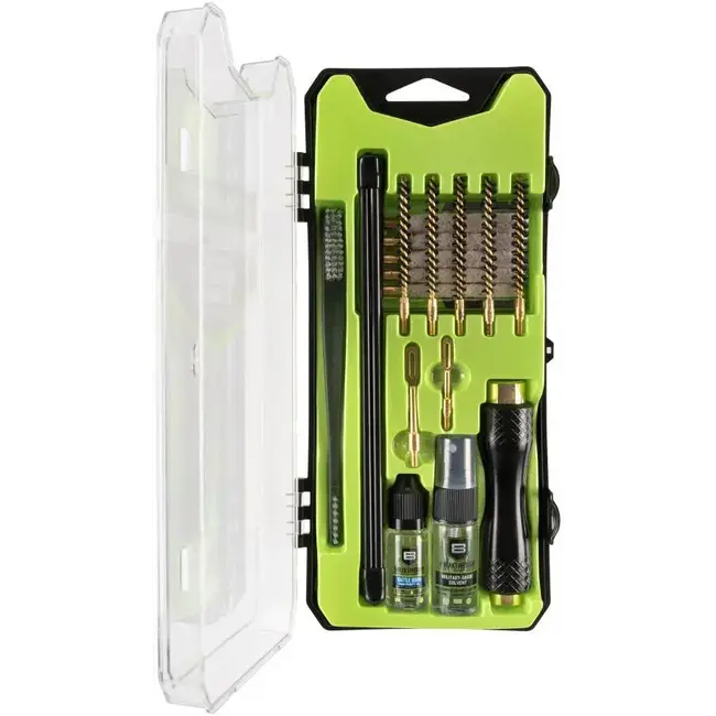 Vous recherchez un kit de nettoyage complet pour garantir que vos armes à feu sont en parfait état ? Notre kit de nettoyage pour fusil de chasse Breakthrough Clean Technologies® Universal Vision Series™ est là pour vous. Contenant tout ce dont vous avez besoin pour bien faire le travail, ces kits sont livrés avec des sections de tiges de nettoyage, diverses brosses en nylon à poils durs, des jags, des porte-patchs et des patchs en coton. De plus, notre poignée en aluminium durable et amovible avec moletage pour une prise facile et des bouteilles de notre solvant de qualité militaire et de notre huile de haute pureté Battle Born. Tout cela est soigneusement organisé dans un étui durable qui agit comme une mini boîte à outils, complété par un plateau en plastique pour que tout reste organisé. Faites-nous confiance pour vous aider à garder vos armes à feu en parfait état.