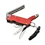 - Lame de scie à double tranchant, tournevis à tête plate, décapsuleur et anneau de sécurité.