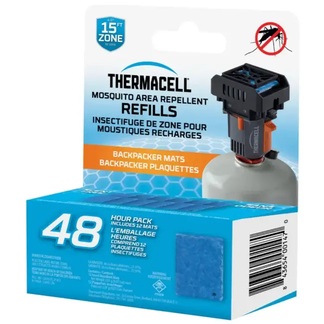 Les recharges Thermacell Backpacker repoussent efficacement les moustiques en créant une zone de protection de 15 pieds lorsqu'utilisées avec les chasse-moustiques Thermacell.