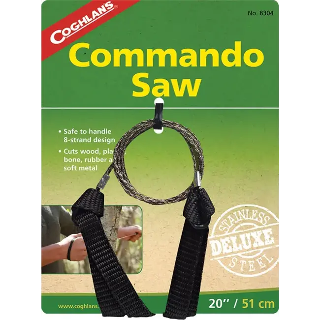 La scie Commando de Coghlan's est dotée d'une lame en acier inoxydable à 8 brins qui peut couper le bois, le plastique, l'os, le caoutchouc et les métaux mous. Ses sangles de poignet en nylon durable permettent de la transformer en piège en passant une sangle de poignet à travers l'autre.