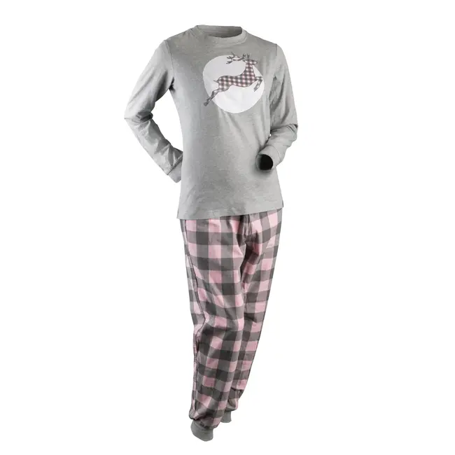 Unwind in the Alper Miagne II Women’s 2-Piece Pajama Set (Gray/Pink). A long-sleeve top pairs with matching pants featuring an adjustable waist for a custom fit. Lightweight and comfortable, perfect for nightly rest or weekend lounging.