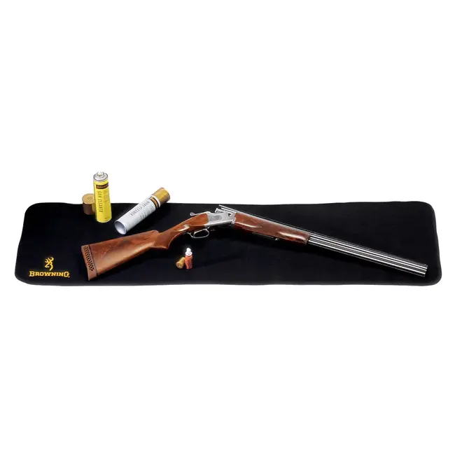 Protect your firearm and your furniture. The Browning 16×54" gun cleaning mat uses a soft, felt-like surface to prevent dings and scratches while you wipe down and service your gun. Underneath, a waterproof Zorb Tech™ backing blocks spills and stops solvents and cleaners from soaking through. The mat rolls up neatly for storage between uses, is washable/dryable, and highly stain-resistant—a simple upgrade that keeps your bench tidy and your gun looking sharp. (Guns and cleaners shown not included.)
