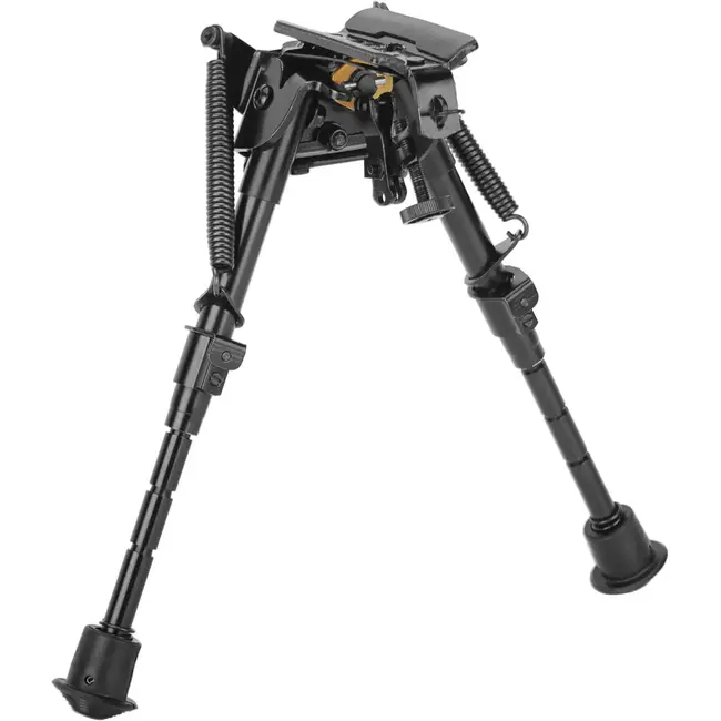 The Caldwell XLA Bipods® provide a stable shooting support that conveniently attaches to almost any firearm with a sling swivel stud. XLA bipods solidly clamp to the swivel stud of the firearm and remain firmly in place without swiveling or twisting while shooting. The lightweight aluminum design adds minimal weight and deploys quickly, with legs that instantly spring out to the shooting position with the touch of a button. The legs are notched for easy indexing to a specific height. There is a connection point for sling attachment and multi section legs that collapse forward allowing for convenient carry of the firearm. Soft rubber feet provide enhanced stability, while the padded bipod base protects the firearm's forend. Available in 4 heights, black or camo and both standard and pivoting models.