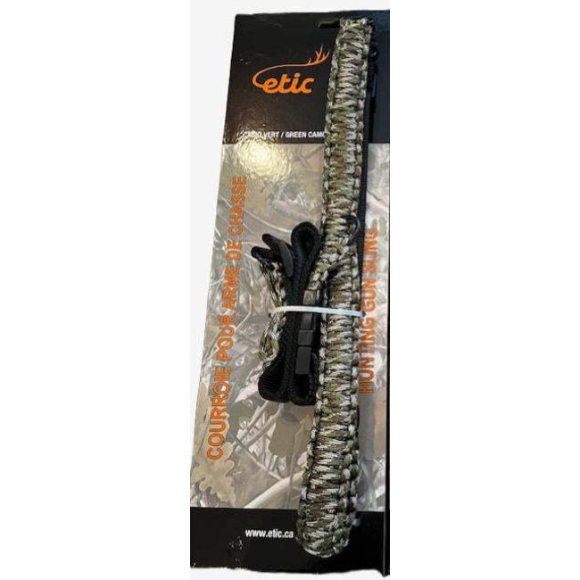 The Étic Green Camo Gun Sling keeps your firearm secure and comfortable on long walks. Fully adjustable and ambidextrous, it wears easily over a coat and backpack, stabilizing your rifle, shotgun, or crossbow on the shoulder so it stays put while you move.