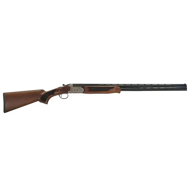 The Pointer Acrius .410 Cal, 28" is a classic break-action over-and-under shotgun that blends traditional aesthetics with practical features for upland and small-game hunters. It boasts a floral coin-finished receiver paired with a Turkish walnut stock for a refined look and comfortable handling. The chrome-lined 28" barrel improves durability and ease of cleaning, while the raised, ventilated rib and fiber-optic front sight deliver quick target acquisition. The receiver accepts five interchangeable chokes (C, IC, M, IM, F), offering flexible shot patterns for a variety of shooting situations. Ideal for field use and clay sports where light weight, balance and reliable break-action performance matter.