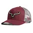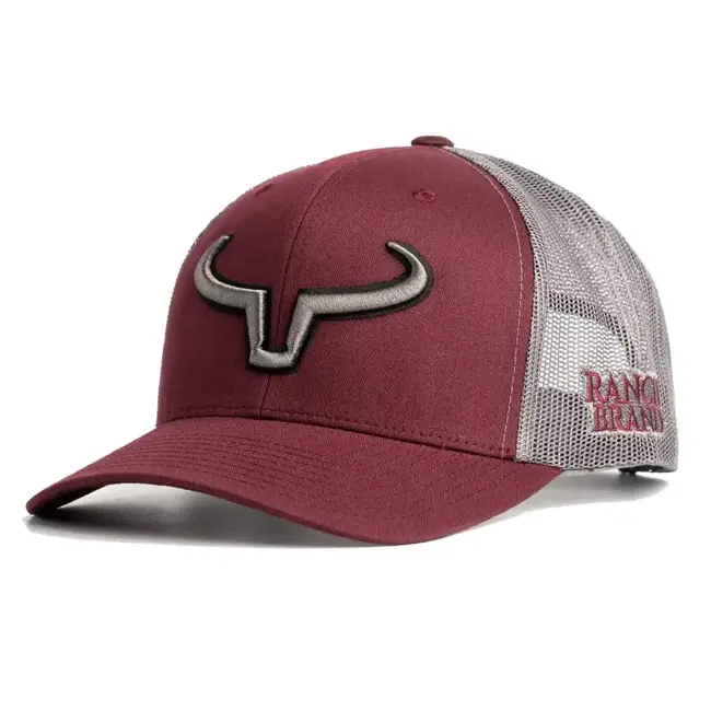 The Ranch Brand Rancher Trucker Cap pairs a burgundy front, grey mesh, and a grey/black logo. This mid-profile, adjustable SnapBack breathes well and keeps a clean, structured crown—built for everyday wear at work, on the range, or around town.