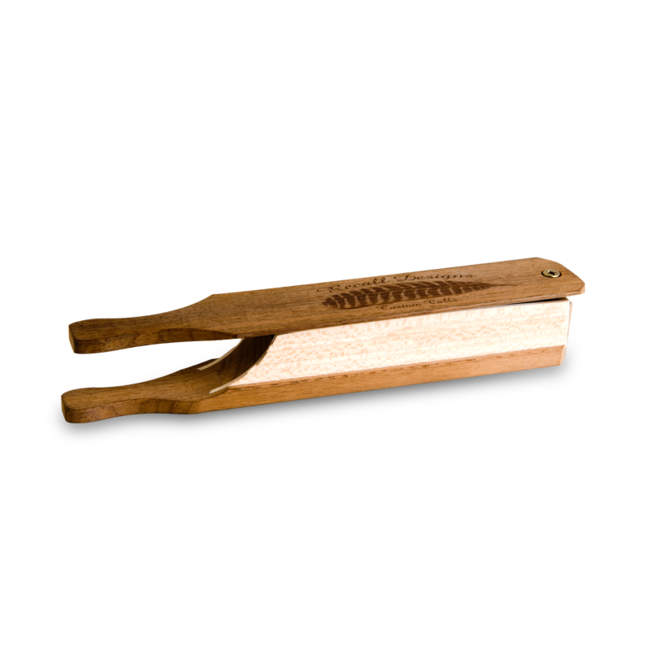 This turkey box, made of black walnut and sycamore, produces a very realistic sound. It is used with chalk for ultimate grip. Reapply chalk as needed. It measures 9 1/4" long.